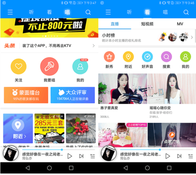 看直播为用户提供了超多高颜值的音乐主播,让用户可以在听歌的同时观看帅哥美女,赏心悦目,更有音乐MV以及音乐短视频可以观看,极大的丰富了用户闲暇生活。
