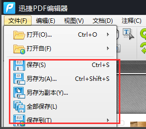 4、在编辑完成文件gif格式之后,点击迅捷PDF编辑器的文件下拉菜单,选择保存类型为PDF就可以。