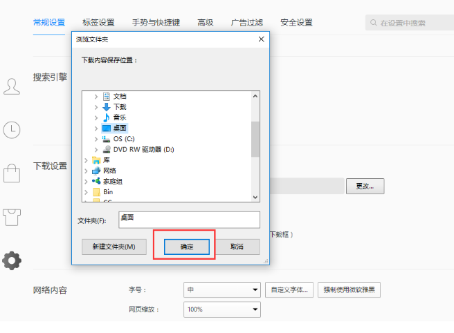 4、如果需要修改保存位置,点击“更改”按钮,选择文件内容保存位置,然后点击确定即可。