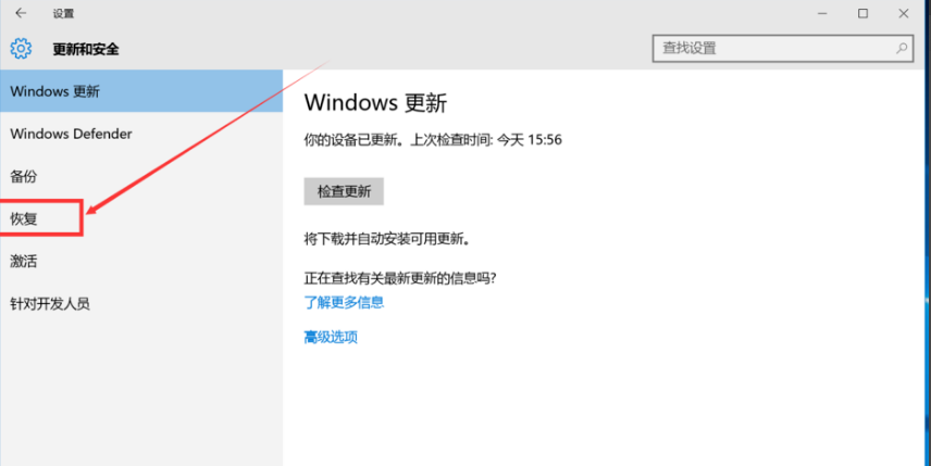 3、在左侧点击“恢复”按钮,进入页面。
