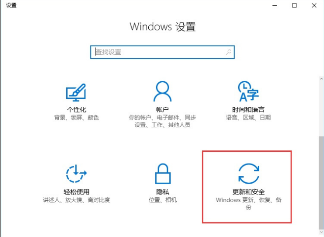 2、找到“更新和安全”点击进入下一页面。