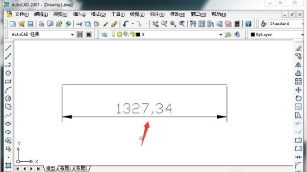 9、返回主界面后我们就会看到尺寸数字和尺寸箭头显示出来了,如图所示。