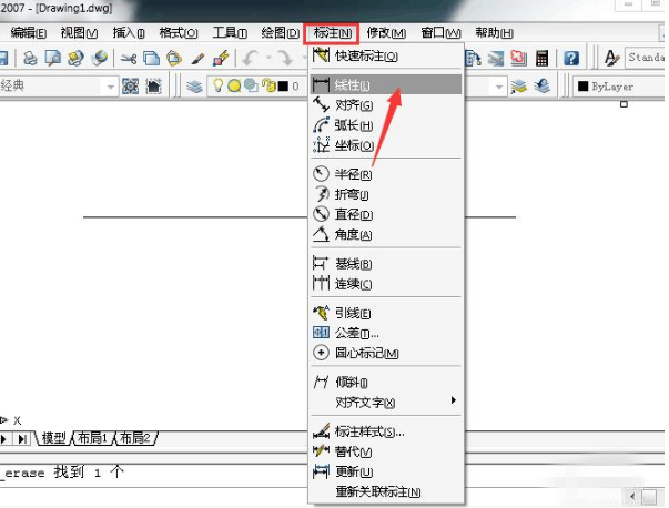 2、点击标注工具栏中的“线性”,如图所示。