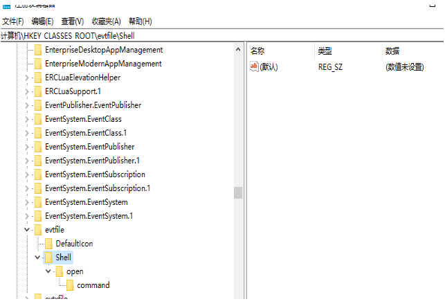 4、再定位到以下分支:HKEY_CLASSES_ROOT\\exefile\\shell\\open\\command