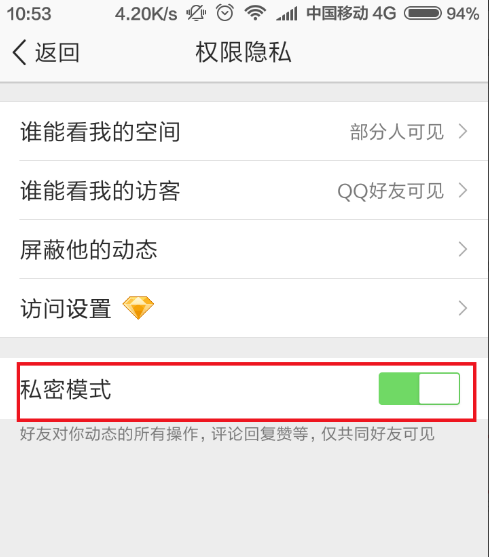 手机QQ空间怎么开启私密模式?