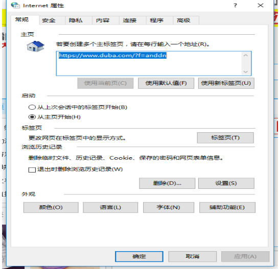 2、然后会弹出一个“internet属性”对话框,