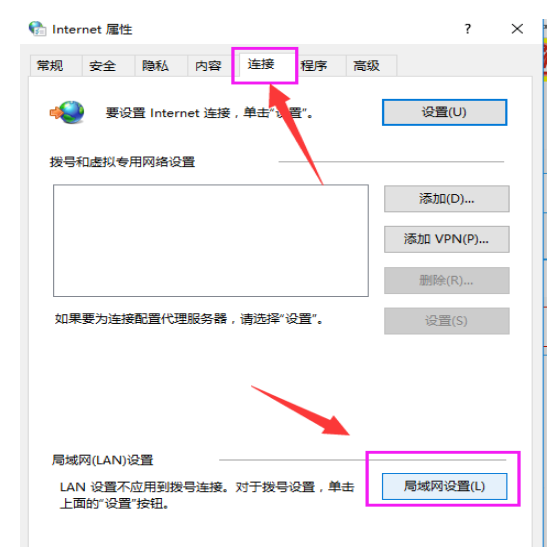 3、点击“连接”选项卡,并单击底部的“局域网设置”按钮,