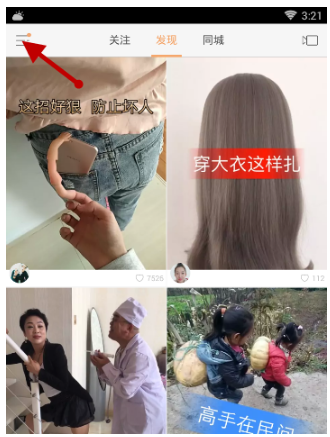 打开快手,点击左上角按钮,然后再选择其中的【本地作品集】,然后点击上传即可。