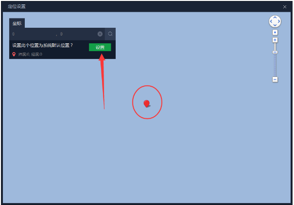 2、点击“虚拟定位”后我们通过鼠标的滑轮来缩放地图,用鼠标左键点击想要设置虚拟位置的地方,之后点击左上角的“设置”按钮就可以了;