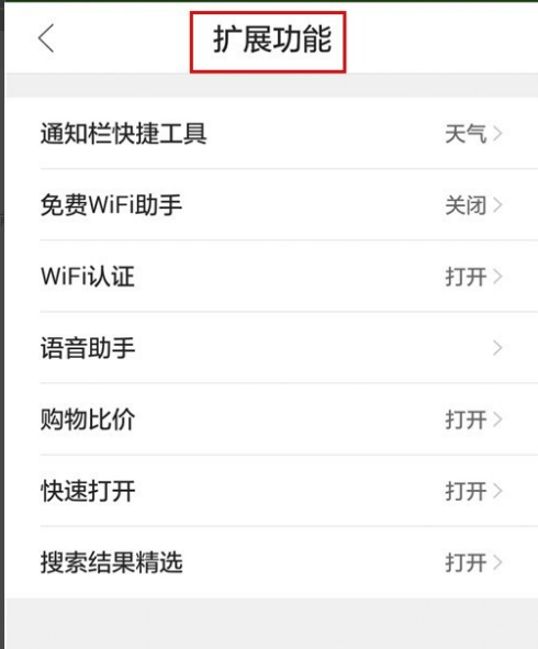 2、再依次点击“设置”-“扩展功能”,点击“语音助手”,