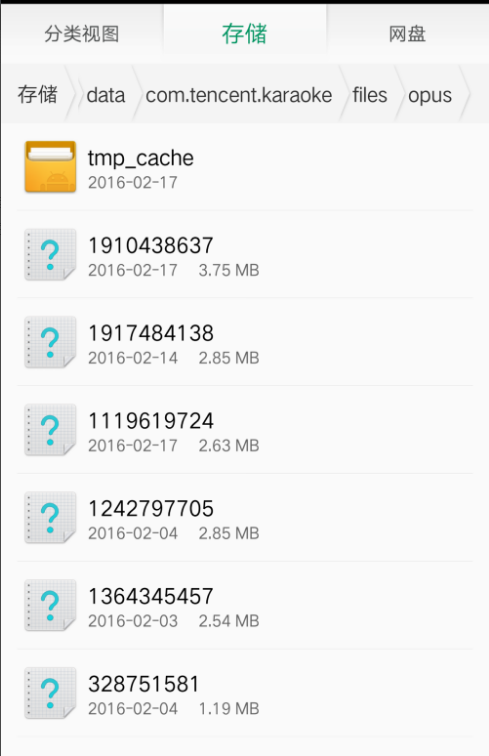 4、打开opus之后你会看到一些不明格式的文件,这些文件其实就是加密过的歌曲缓存文件,