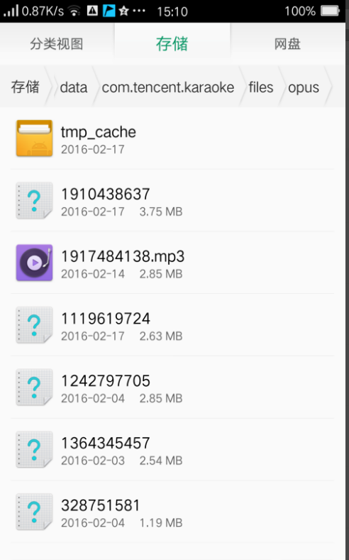 3、之后找到文件管理,找到Android文件夹—打开选择data文件夹—打开com.tencent.karaoke文件夹,之后打开files——打开opus