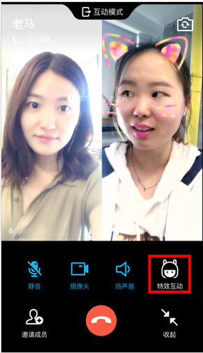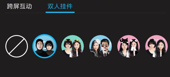 在最新版的手机QQ中,不仅有跨屏互动特效,还有了双人挂件。在双人挂件中,屏幕被均分为了两屏,左右显示双方,最好玩的就是可以将变身特效同时应用到双方里,可以让双方同时变成大叔大姨或者可爱小猫造型。