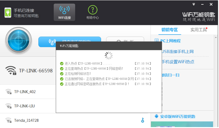 wifi万能钥匙电脑版怎么连接手机?