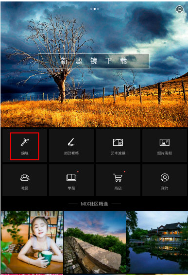 1、在MIX滤镜大师主界面中,点击功能栏目中的“编辑”;