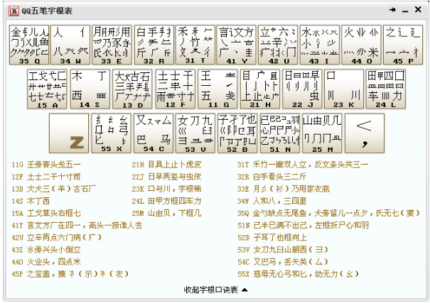 QQ五笔输入法字根表在哪?