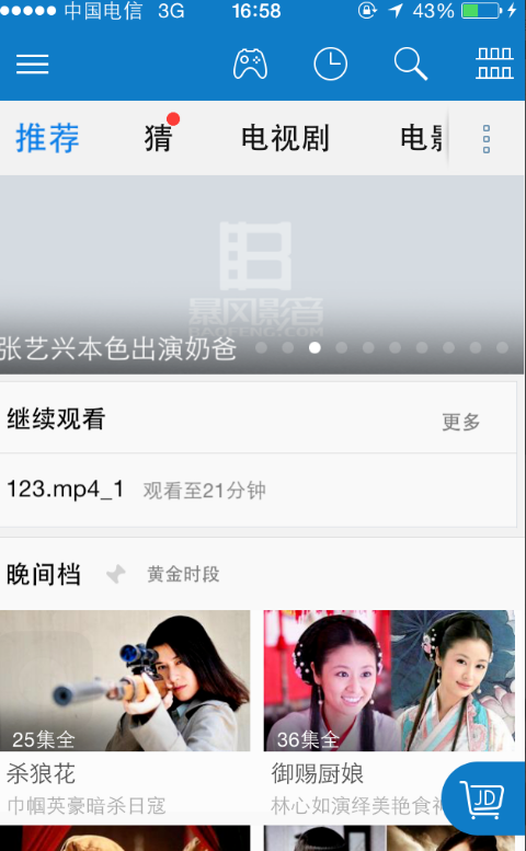 1、在手机上打开暴风影音视频播放器,