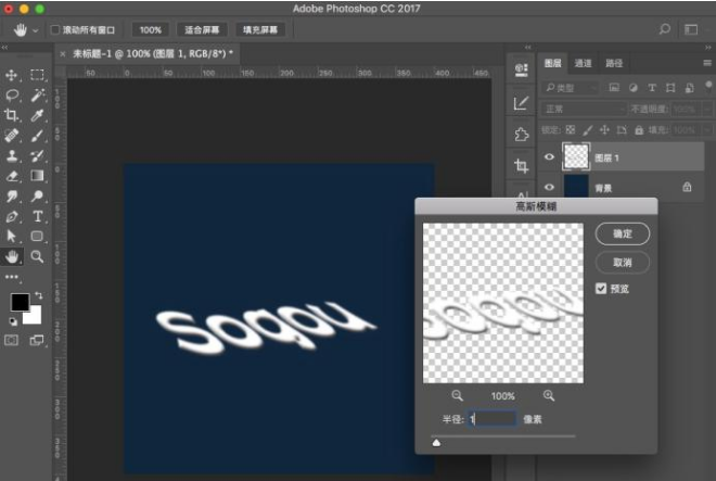 7、点选图层1,选择“滤镜-模糊-高斯模糊”,数字为1px左右,点击“确定”。
