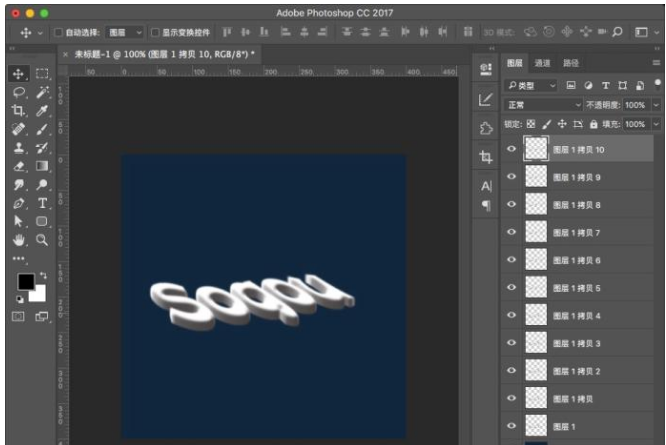 8、接上选择图层1,然后按alt+方向↑,不断的向上复制图层,然后就能得到一个立体效果,点选所有图层进行ctrl+e合并。