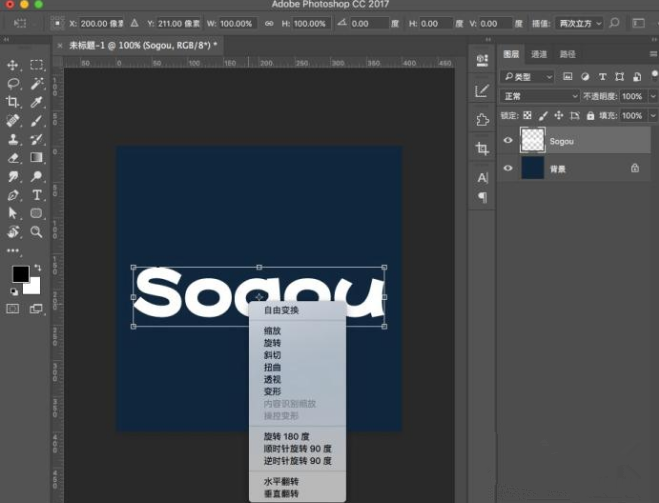 3、右键点击文字图层,选择“栅格化图层”,然后ctrl+t进入自由变换,右键点击选择“变形”。