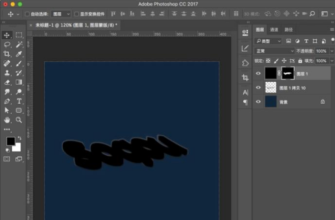 10、ctrl+左键点击文字图层,然后点选黑色图层,在右下方选择“剪贴蒙版工具”,来给黑色纯色背景进行蒙版处理。
