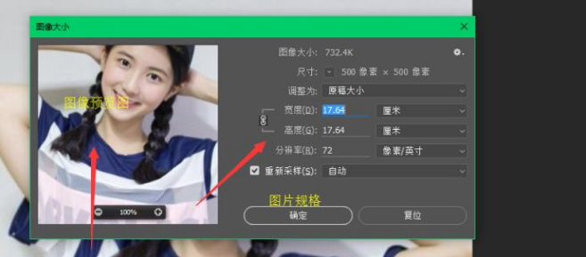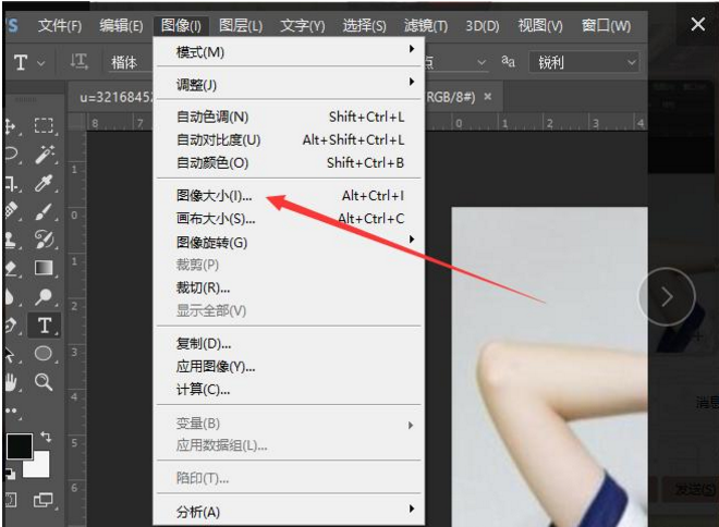 2、将图片打开后就可以修改画像大小了,
