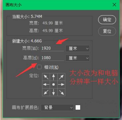 4、如何想要制作跟电脑屏幕分辨率一样的图片,首先查看自己电脑的分辨率,确定分辨率后将图片分辨率改为和电脑一样。