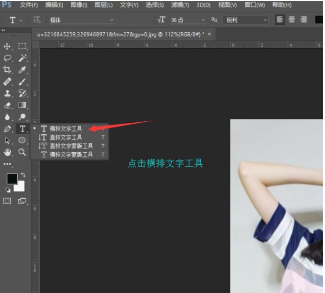 点击T字型工具横排文字工具。