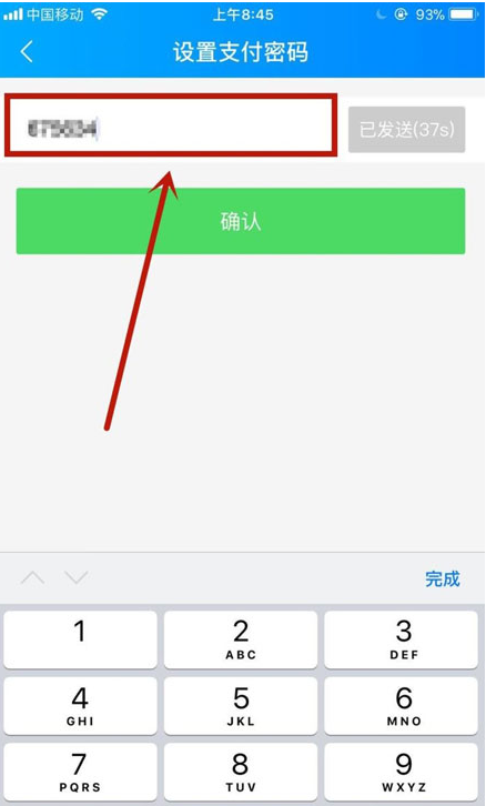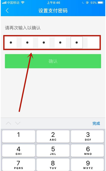 7、接着再次输入六位密码,点击确认,如下图所示。
