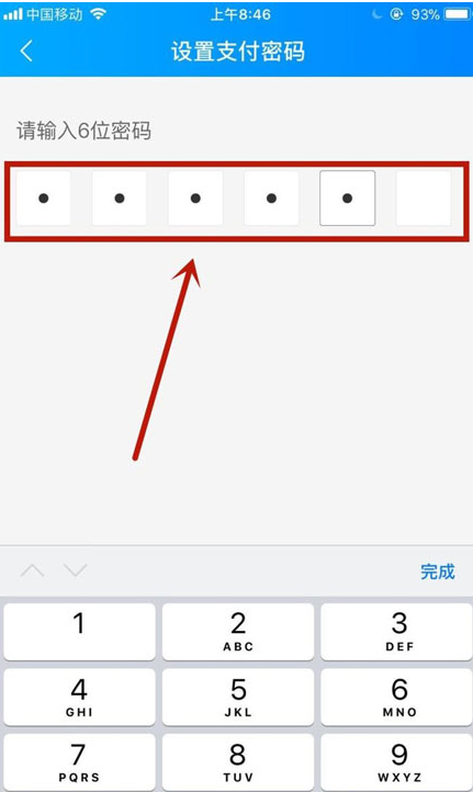 6、然后输入六位密码,如下图所示。
