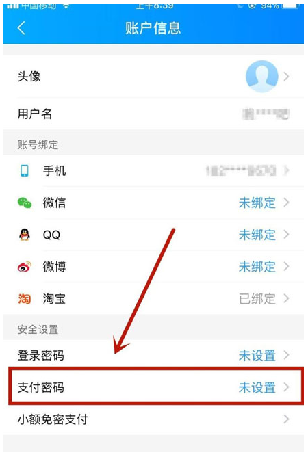 3、然后点击“支付密码”,如下图所示。