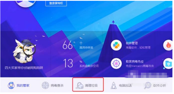 在电脑管家下方,点击‘清理垃圾’,进行垃圾扫描并清理。
