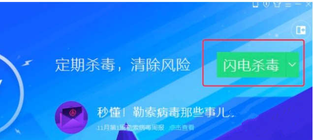 6、打开杀毒页面后,点击“闪电杀毒”。