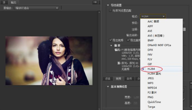 12、将我们的格式设为H.264,快速输出MP4的视频文件。