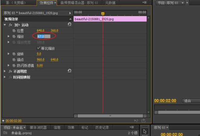 7、调整缩放参数,以匹配素材图像与预览窗口的大小。