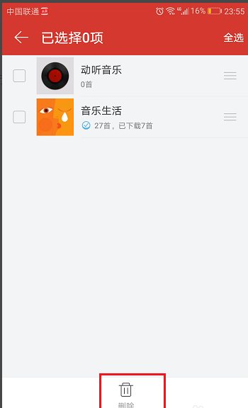 5、点击开始的歌单管理,可以进行批量删除操作,如下图所示: