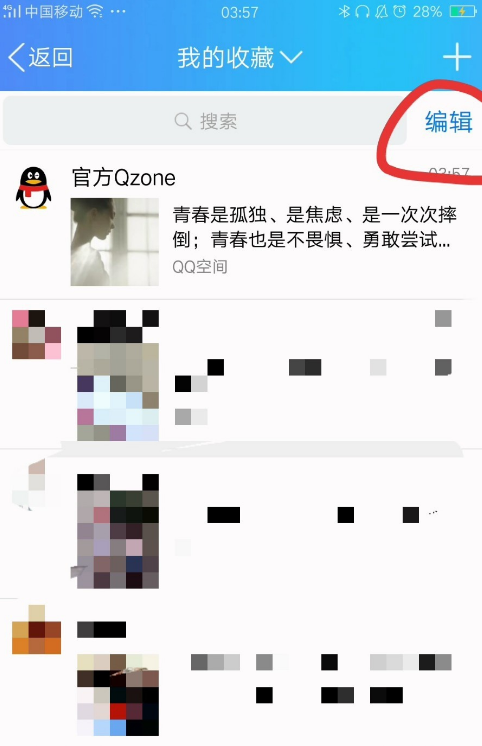3、点击右上角的编辑,将你要保存的视频随便转发给一个qq好友。