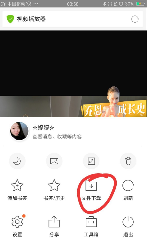 6、在浏览器里点击菜单栏,里面有一个文件下载,下载好的视频就在这里,这时候就可以在微信里直接发给朋友了。