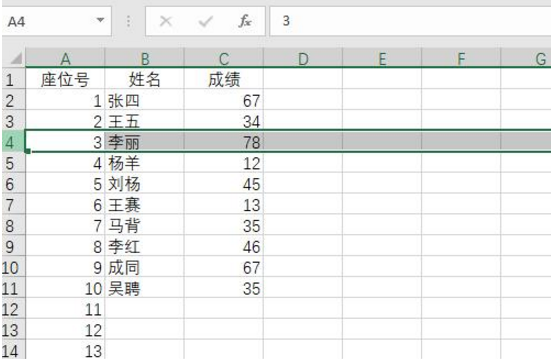 3、删除行自动生成序列号。如果需要将某行删除的话,这里也是用行三来演示,选中行三,然后删除,删除后发现原来行四移到行三位置以后序列号也变成了3,这就无需我们手动再次生成,非常方便。