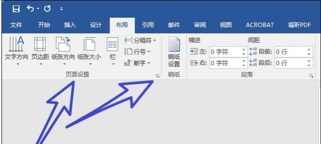 2、然后我们打开文档,在上方的布局里面找到页面设置,点击右侧的小箭头。