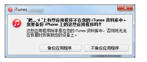 备注:iOS设备安装正版应用会提示是否传输iOS设备内已购买正版应用到iTunes资料库,点击“不备份应用程序”。