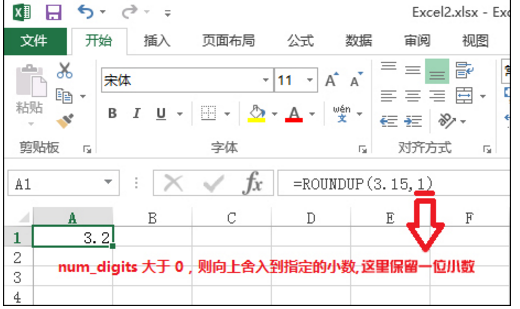 1、如图所示,当Roundup函数中参数 num_digits 大于 0时,则表示向上舍入到指定的小数位(这里保留一位小数)。