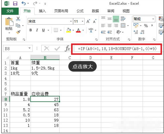 4、如图所示,在计算物流快递费用时经常用到,不满一公斤要按一公斤计算,所以要用到向上舍入。