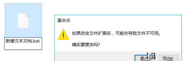 5、将文件扩展名修改为.bat,会提示不可用,不用管它,选择是。