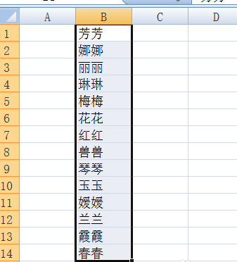 2、复制员工的名字到一个空白的excel工作表中的第二列,注意前面要留一列。
