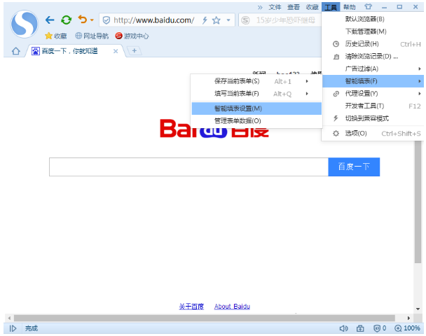 1、首先我们打开搜狗浏览器,在右上方的位置找到“工具”并打开,在工具里继续找到“智能填表”,然后再打开“智能填表设置”;