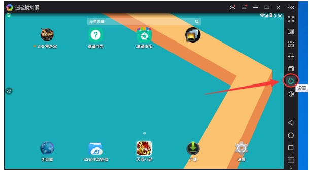 1、首先我们打开逍遥安卓模拟器,然后在其右侧的功能列表中打开“设置”;