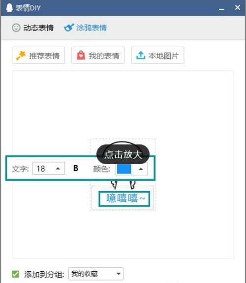 4、我们在这个表情包下方输入一些文字,如下图展示,可以更改字体大小和字体颜色。