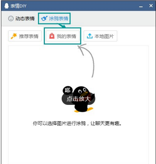 2、进入表情DIY界面后,点击“涂鸦表情”→“我的表情”。