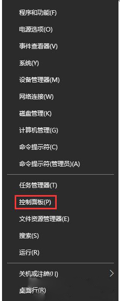 1、开始菜单右键,点击打开“控制面板”,